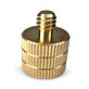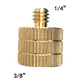 Montagem Superior: 1/4"-20 Macho (6.35mm) Montagem Inferior: 3/8"-16 Fêmea (9.52mm) Material: Latão Dimensões: 8x10mm Peso: 17gramas |
