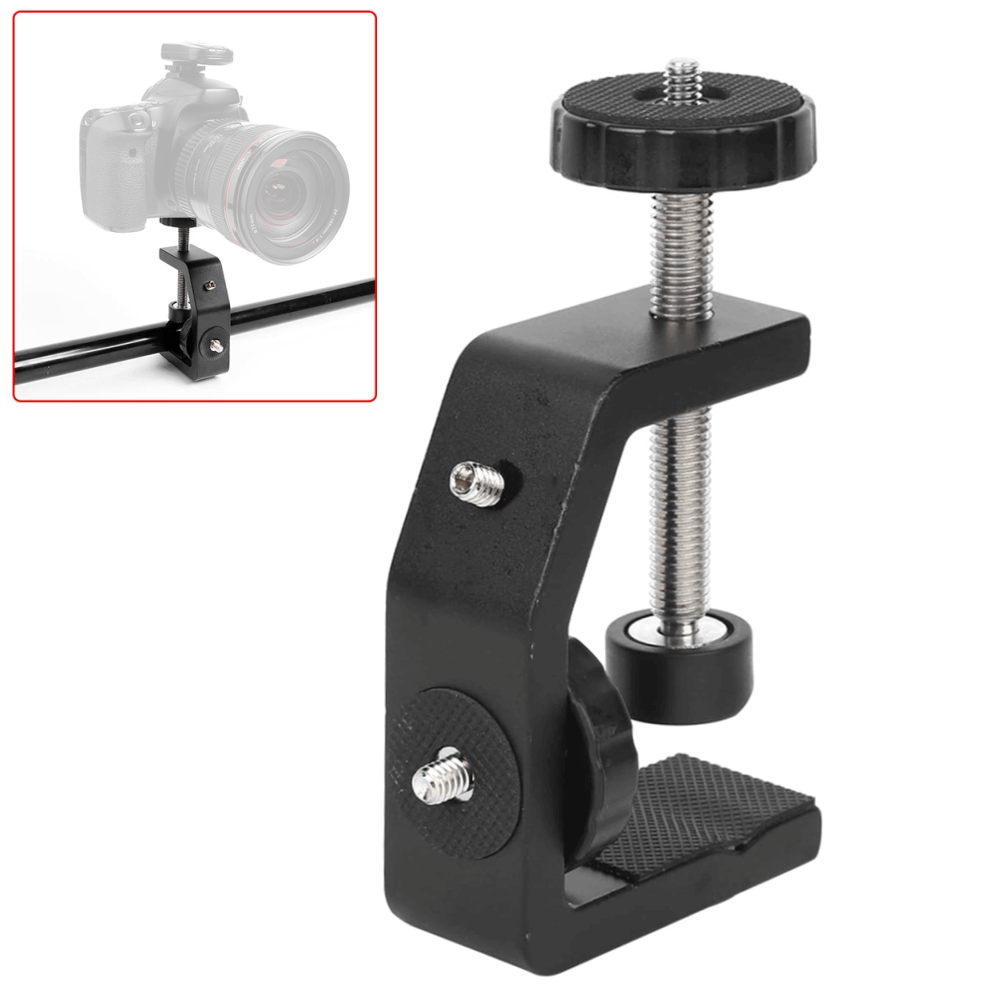 Com parafusos padrão 1/4", esta Braçadeira C-Clamp Suporte para Mesa e Estúdio permite acoplar câmeras fotográficas, iluminadores LED, braços articulados, cabeças ball head, monitores e diversos acessórios fotográficos. Isso facilita a montagem de setups profissionais, seja para fotografia still, gravação de vídeos, lives ou estações de edição e streaming.