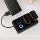 A Interface USB 2.0 Integrada permite que o Carregador de Bateria seja alimentado por qualquer fonte de alimentação USB, incluindo computador, notebook, carregador veicular, carregador de parede, bem como PowerBank.