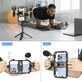 Com 2x Suportes Handgrip Montagem Tripé Rosca 1/4" 4x Sapatas Fria Integrada Suporte de 63 a 93mm (largura) Feita em Liga de Alumínio Resistente, leve e durável Ideal para Smartphones Android e iOS Perfeita para Vídeos, Gravações e Lives |