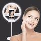 Ring Light de 11" / 27cm Temperatura de 3200 a 5500K Controlável via APP Smartphones Luz de Preenchimento Multifuncional Suporte para Celuares Possui Espelho Central Ideal para Vloggers, Entrevistas Também Fotografia de Produtos |