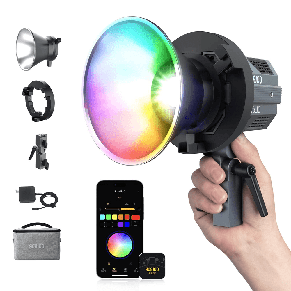 O Iluminador LED Colbor CL60R RGB usa contas de LED de fonte pontual COB de 65W, capaz de maximizar a potência de saída para 80W, fornecer 2600 lux a 1 metro e até atingir uma saída surpreendentemente constante de 22.974 lux a 1 metros com o Refletor Bowens incluído.