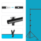 Há um Trípe de Iluminação de 2m para suportar cada fonte de luz, e para completar a configuração do estúdio, existe um sistema de Suporte de Fundo Infinito com quatro barras transversais e seis Grampos de fixação para prender tecidos de Fundo Infinito que estão disponíveis na cor preto, branco e verde. Uma bolsa de transporte está incluída para as lâmpadas, tripés, softboxes e guarda-chuvas, assim como uma bolsa de armazenamento para o sistema de suporte de fundo infinito.