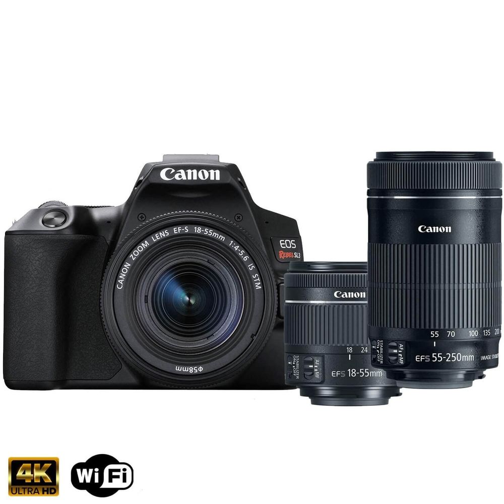 • Kit Premium Canon, Câmera Sl3 4k mais as Lentes Canon EF-S 18-55mm IS STM e EF-S 55-250mm IS STM