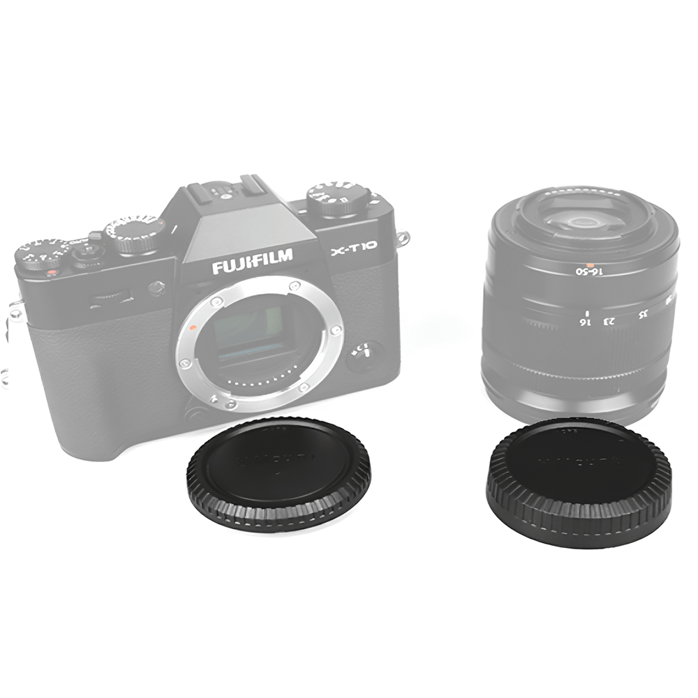 O Kit Tampa Câmeras FujiFilm e Lentes X-Mount são tampas usadas para proteger o sensor de sua Câmera FujiFilm Mirrorless de Montagem X-Mount, bem como os elementos da parte traseira de uma Lente de Montagem FujiFilm X-Mount, como seus contatos eletrônicos, de poeira, impressões digitais e umidade. Este Kit Tampa Câmeras e Lentes FujiFilm pode se usado como acessórios sobressalentes ou como substitutas das originalmente incluídas com Lentes FujiFilm e Lentes de qualquer marca que possua montagem X-Mount da Fuji.