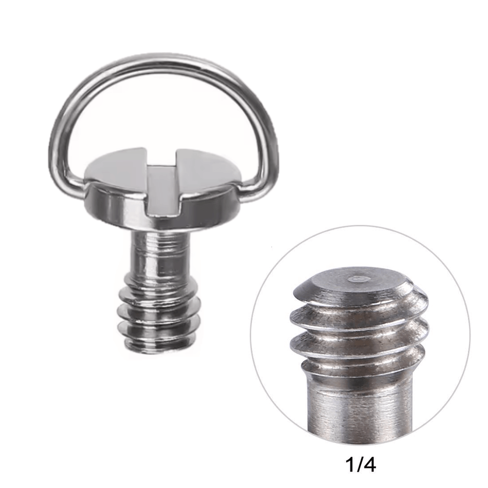 O Parafuso Adaptador D-Ring 1/4' para Tripé e Plate Engate Rápido QR (T10x18mm) é um parafuso de precisão prático e indispensável para montagem segura de câmeras e outros equipamentos em Tripés e Monopés de estúdio, Cabeças de Tripé, Plates e diversos suportes fotográficos. Com ranhura para chave de fenda e anel tipo D-Ring integrado, o Parafuso D-Ring 1/4" permite aperto e remoção manual sem necessidade de ferramentas, facilitando a instalação rápida no dia a dia de produções fotográficas e audiovisuais.