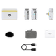 O Sistema Duplo Wireless Hollyland LARK C1 DUO (Branco Marfim) de microfone Sem Fio repleto de recursos que está pronto para uso fora do estojo de carregamento. Desembarace seu fluxo de trabalho de gravação de áudio com sua configuração plug and play do Receptor RX .