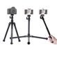 O tubo do Tripé Portátil Kingjoy P056 adota o modo de bloqueio giratório: pode ser convenientemente ajustado para a altura desejada, girando o tubo do tripé. Pode travar o tubo com mais força e tornar o tripé mais fixo. Suporte também coluna central reversível para fotografia em close-up.