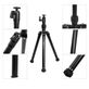 Combinado com um clipe de telefone universal com rosca de 1/4" (não incluído), ele também pode atuar como um bastão de selfie e um tripé de tripé selfie telescópico adequado para a maioria dos celulares.